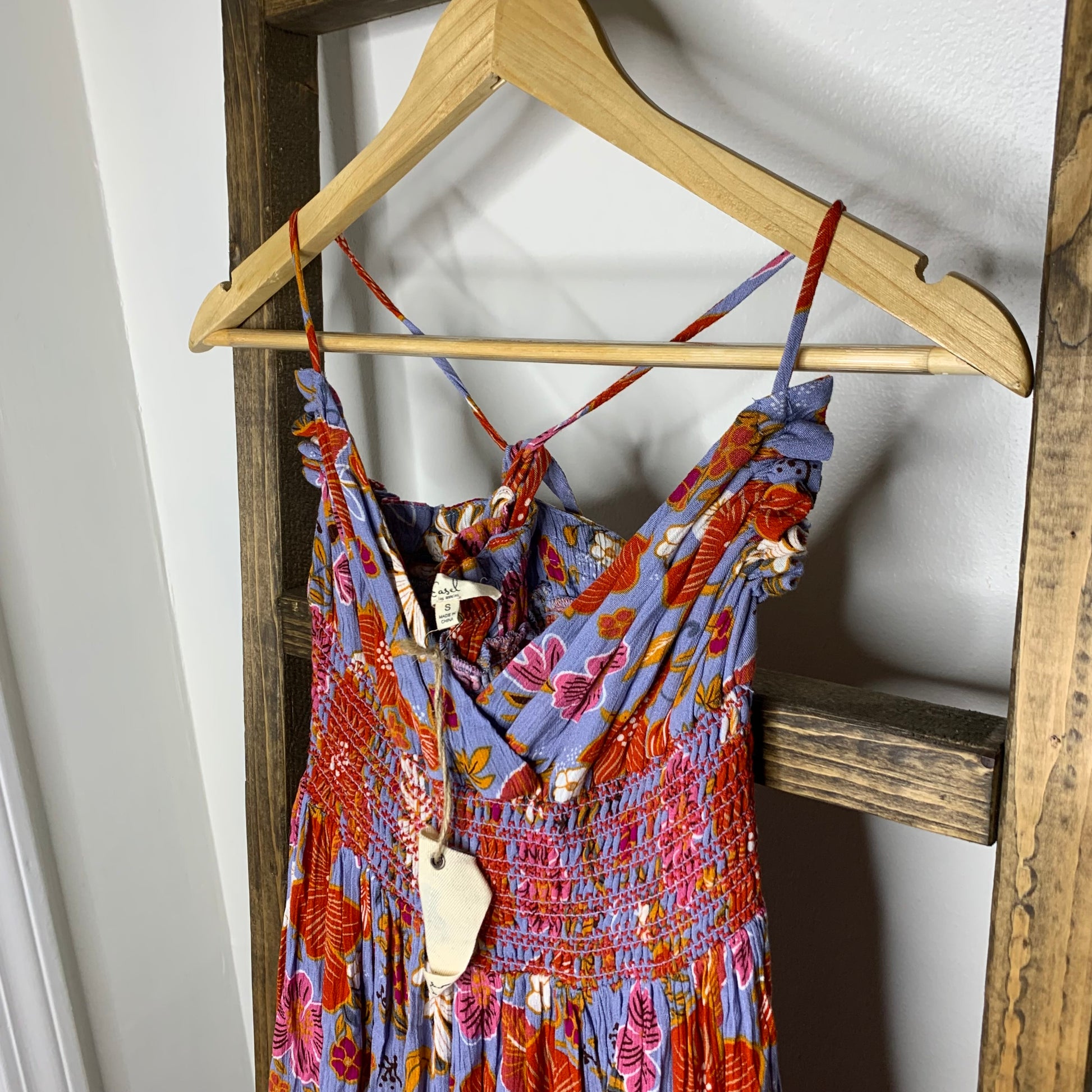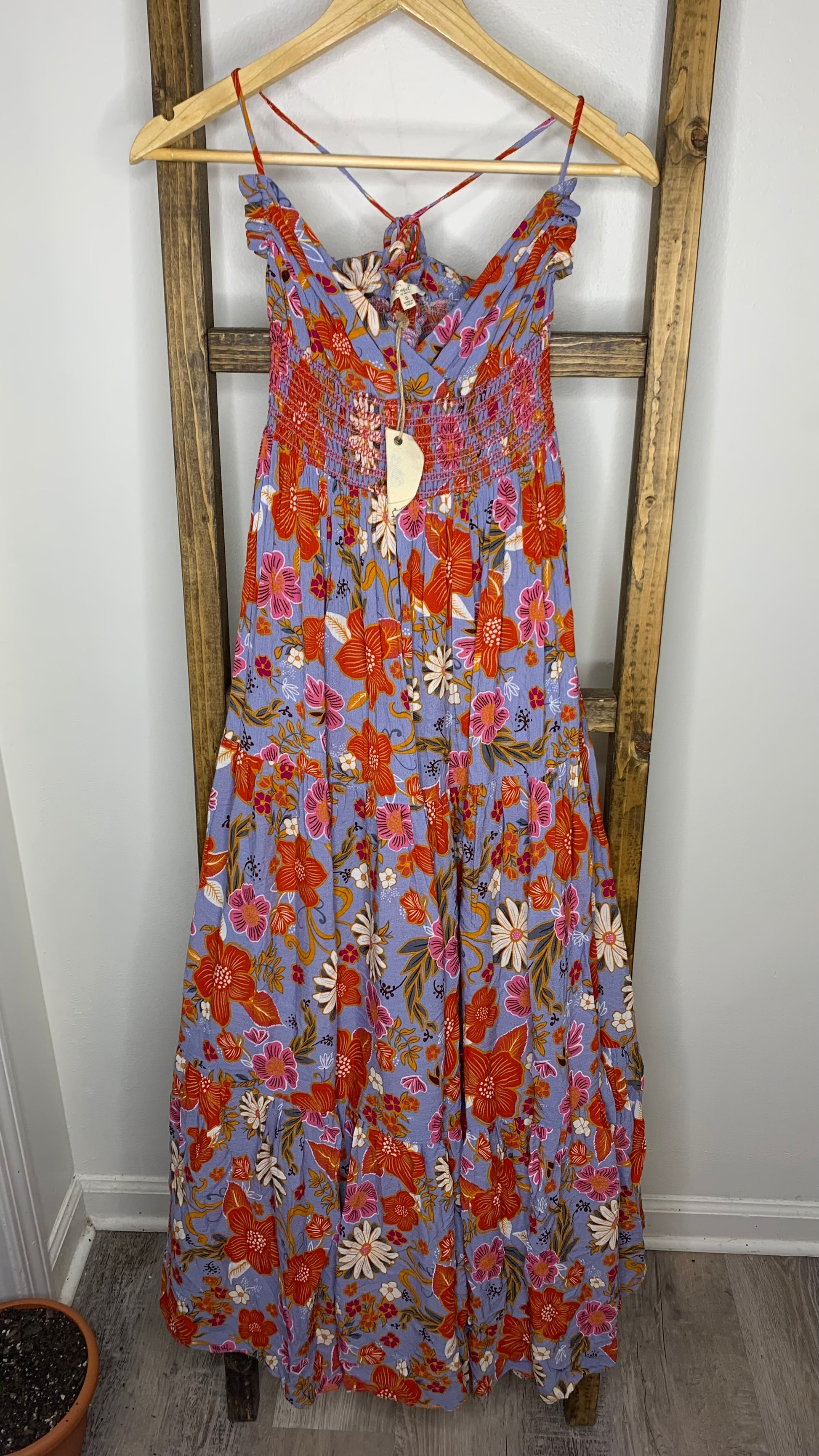 Easel Floral Print Criss Cross Back Maxi Dress S