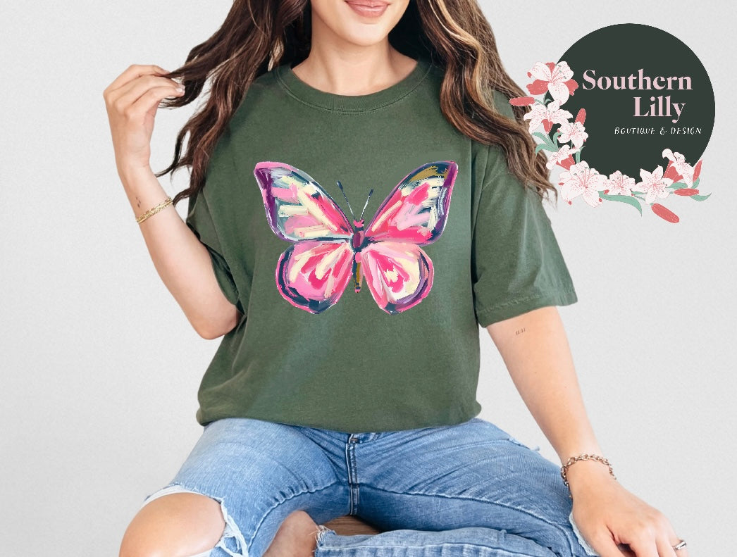 Printed on your choice of color. If no color is added to the personalization box it will be printed on blossom. The second one is shown on hemp green.