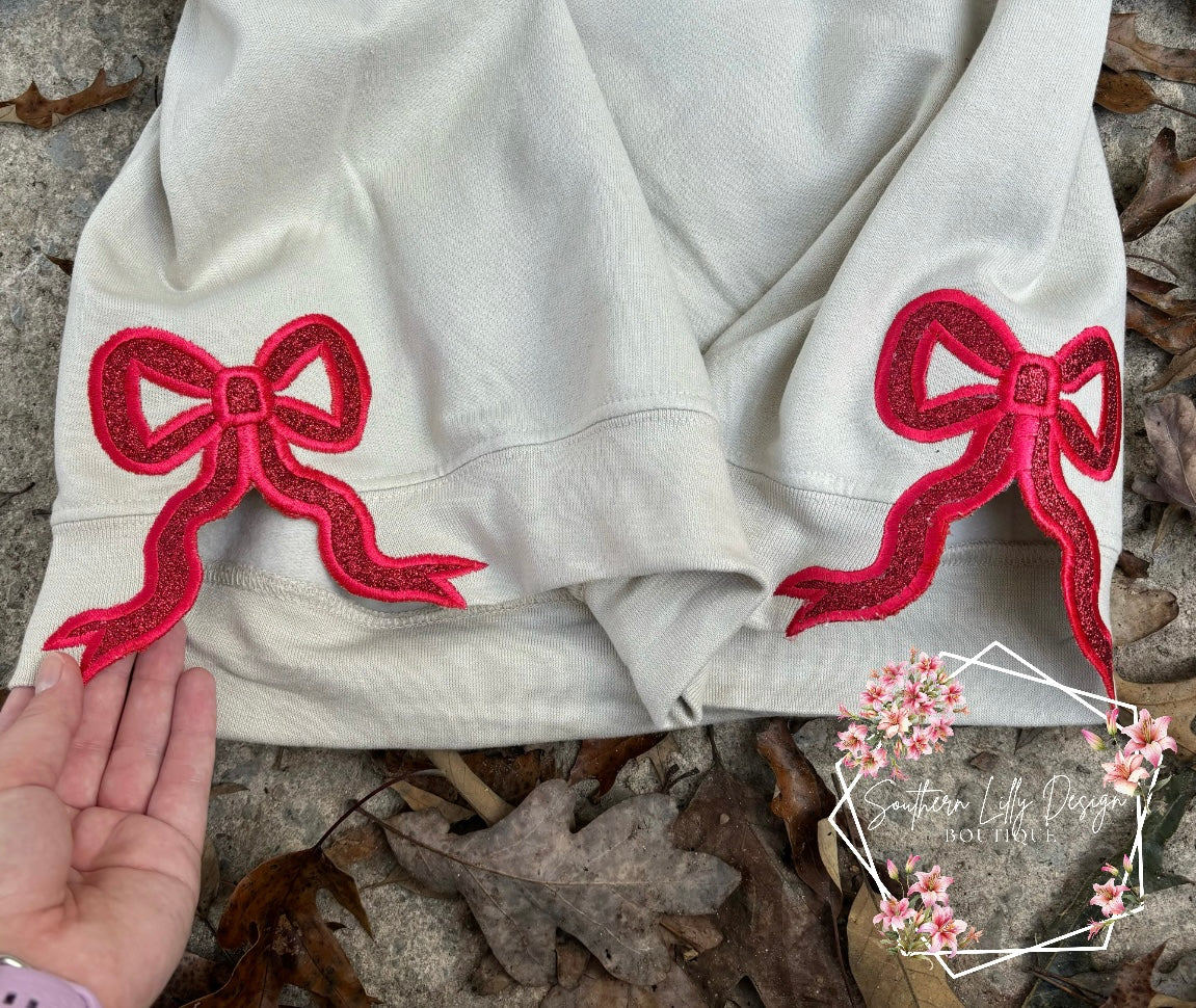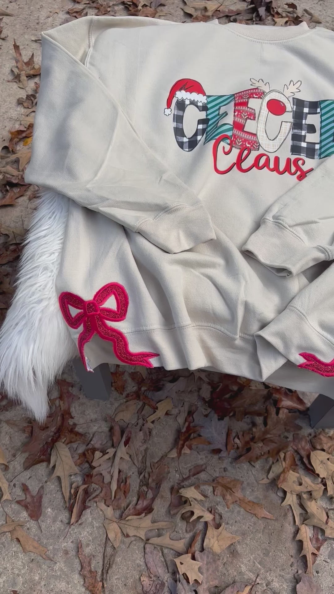Christmas Custom Nickname Claus Doodle Font Embroidered Glitter Bow Sweatshirt