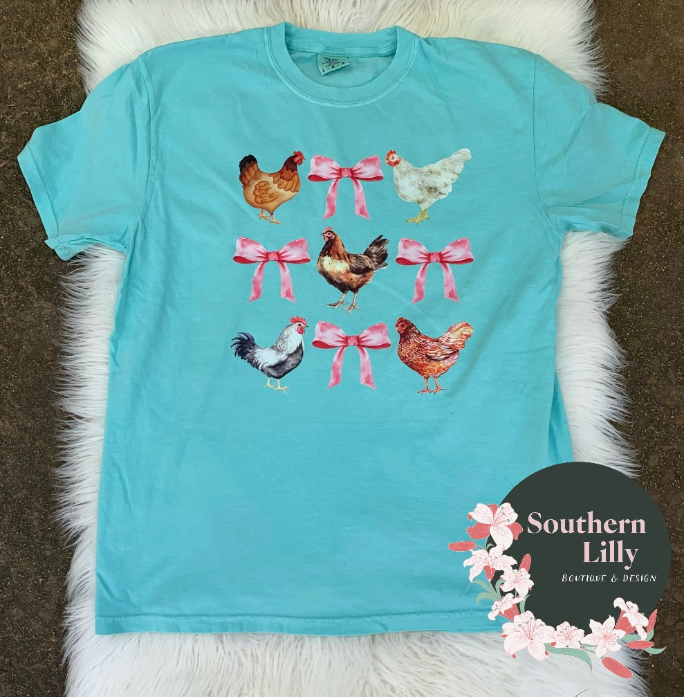Coquette Bows with Chickens Comfort Colors T-Shirt