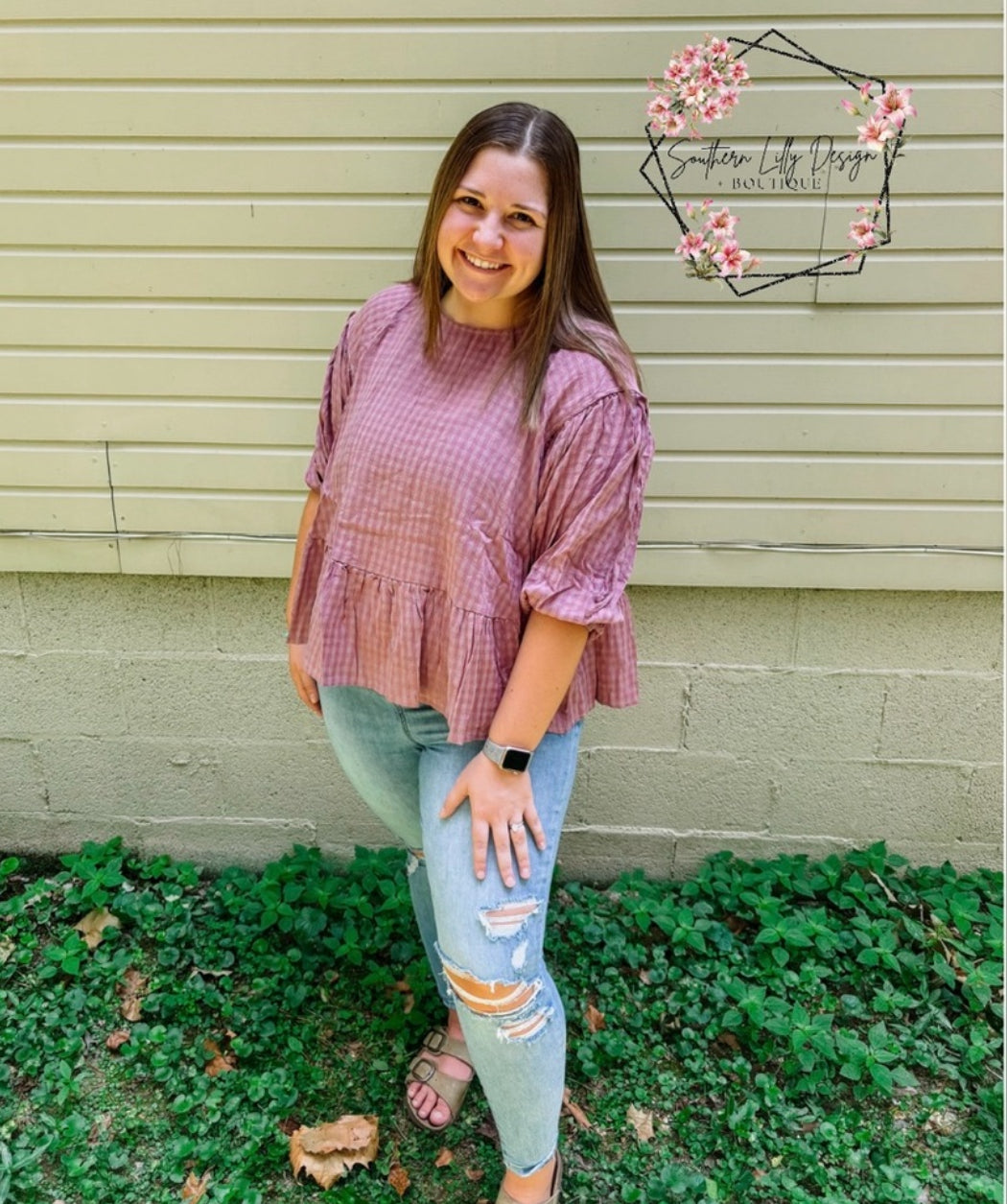 Add a touch of effortless charm to your wardrobe with this gingham ruffle peplum top! Designed with a flowy silhouette, delicate ruffle sleeves, and a flattering babydoll fit, this top is perfect for year-round wear. Whether you're styling it for a casual brunch, a picnic date, or a cozy fall look, this coquette-inspired blouse is a must-have!