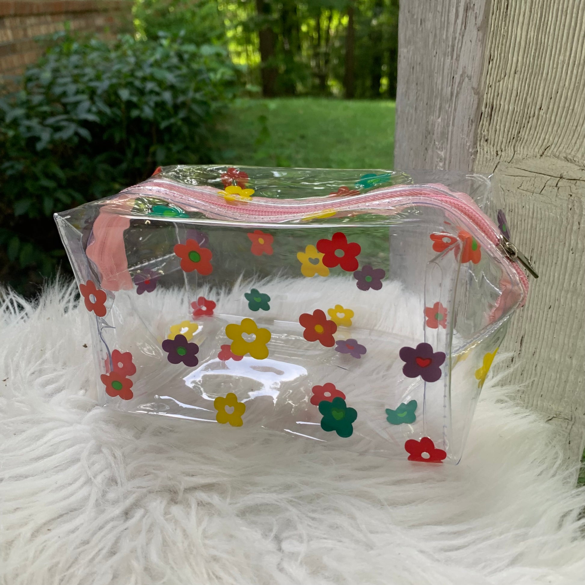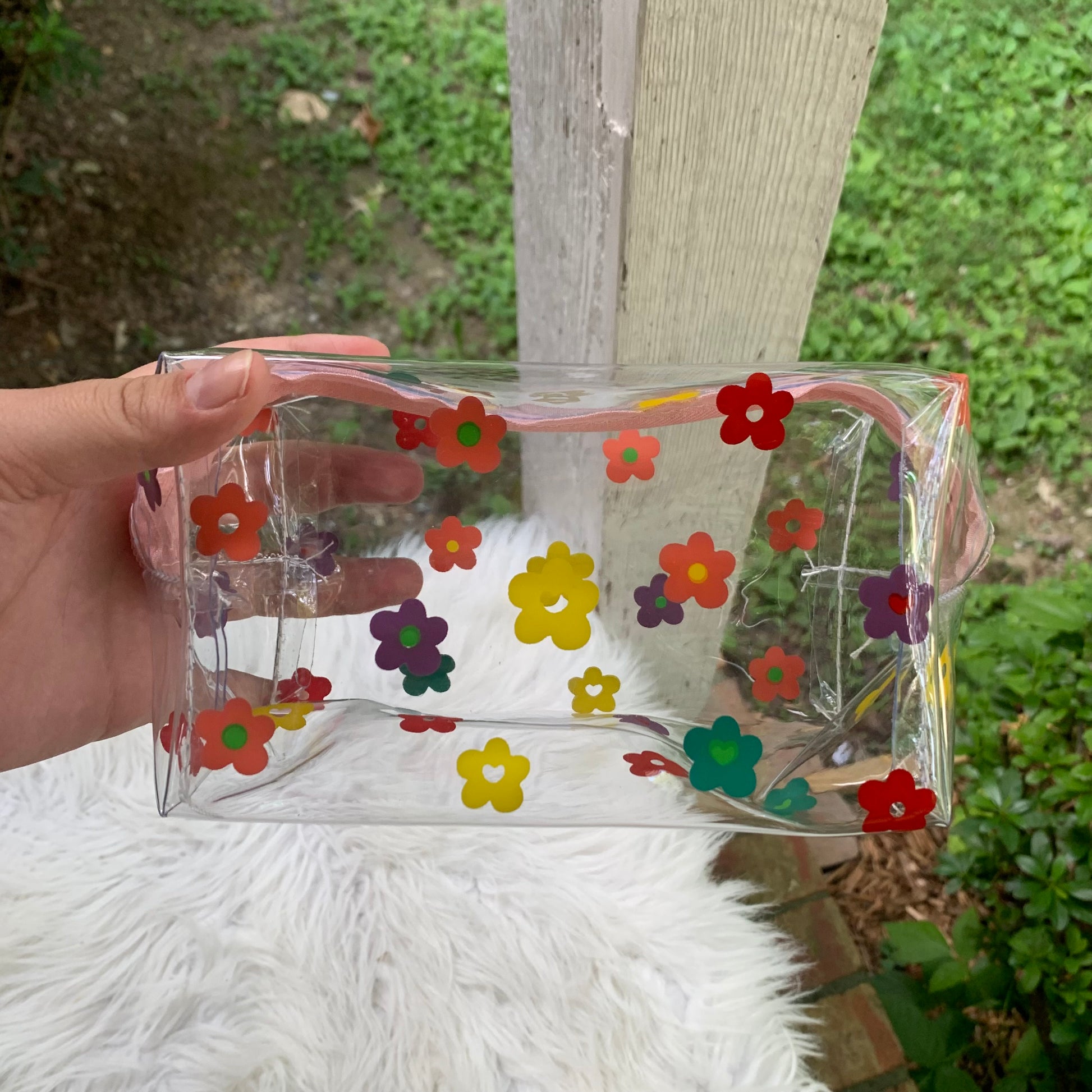 Flower Print Clear Cosmetic Bag/Pencil Pouch Bag