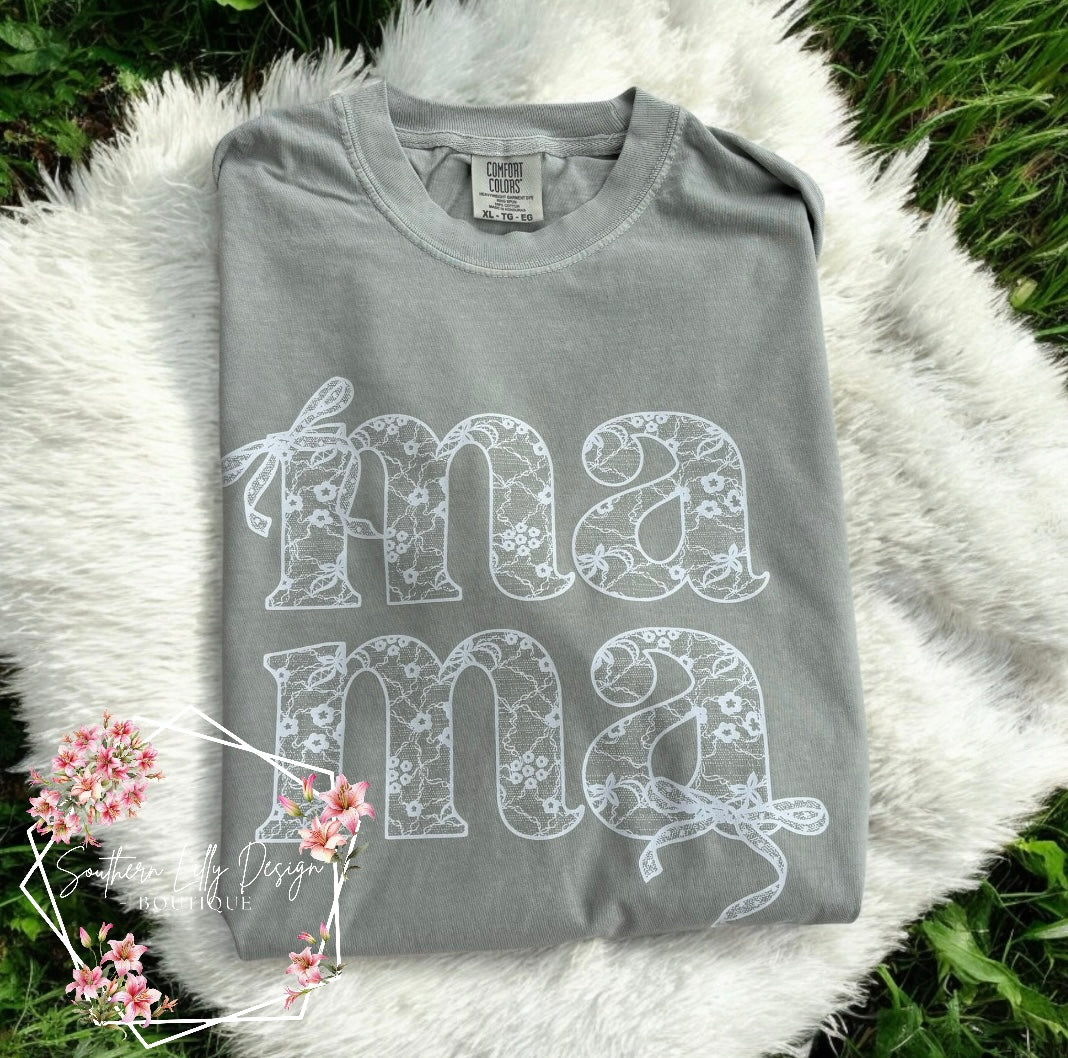 Lace Bows "Mama" Comfort Colors T-Shirt – Perfect Mother’s Day Gift
