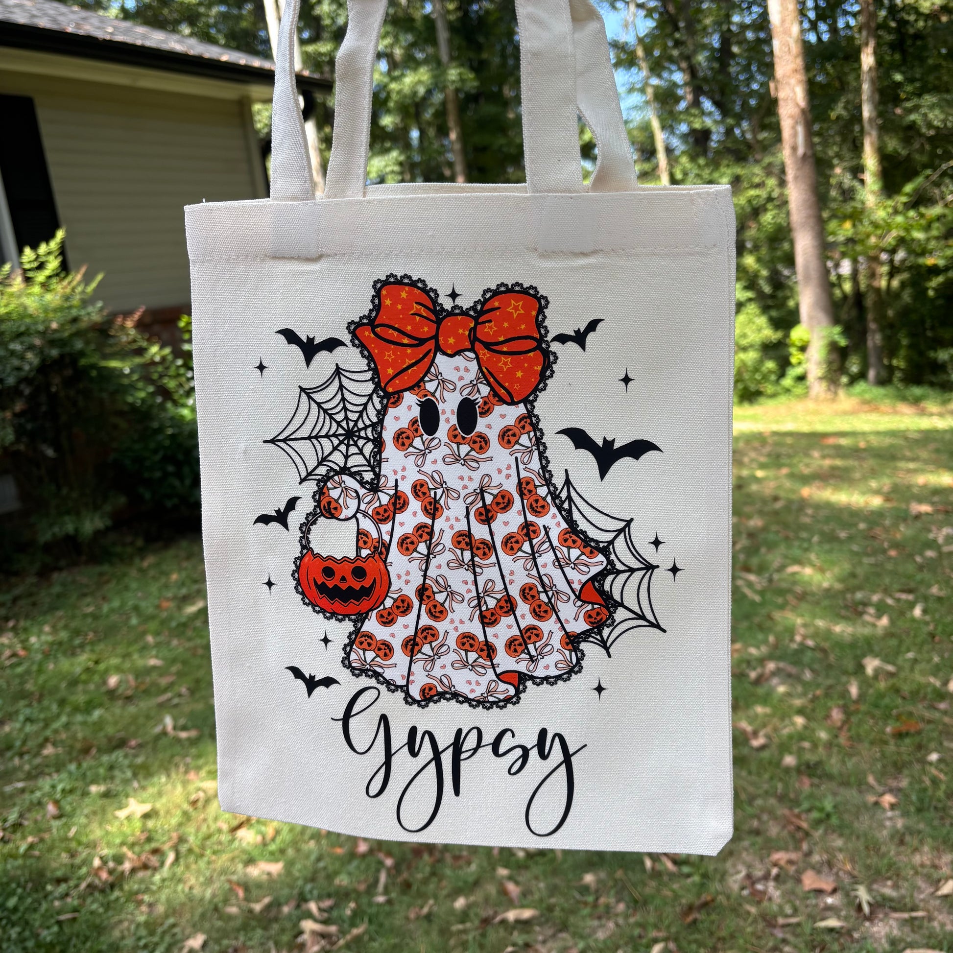 Personalized Kids Halloween Trick-or-Treat Bags – Custom Name Ghost Design