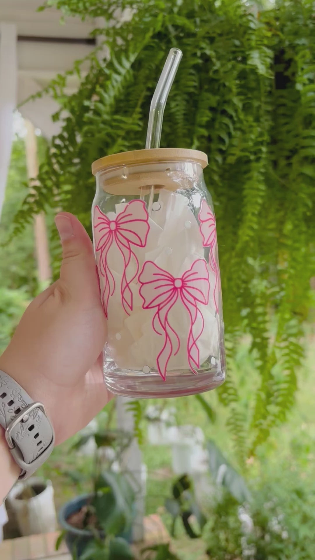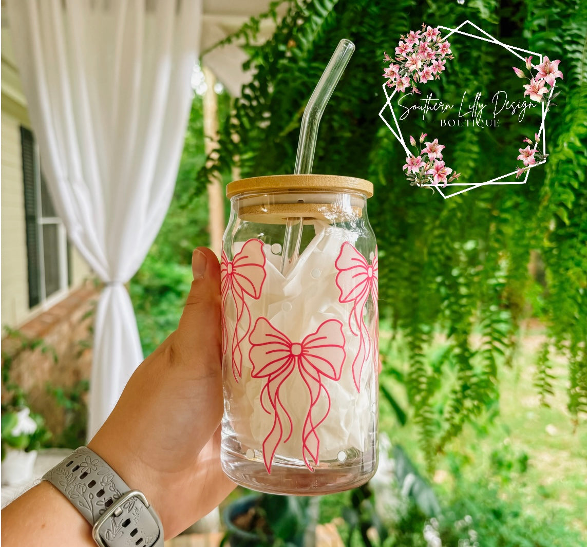 Pink Bows Coquette 16oz Glass Coffee Cup