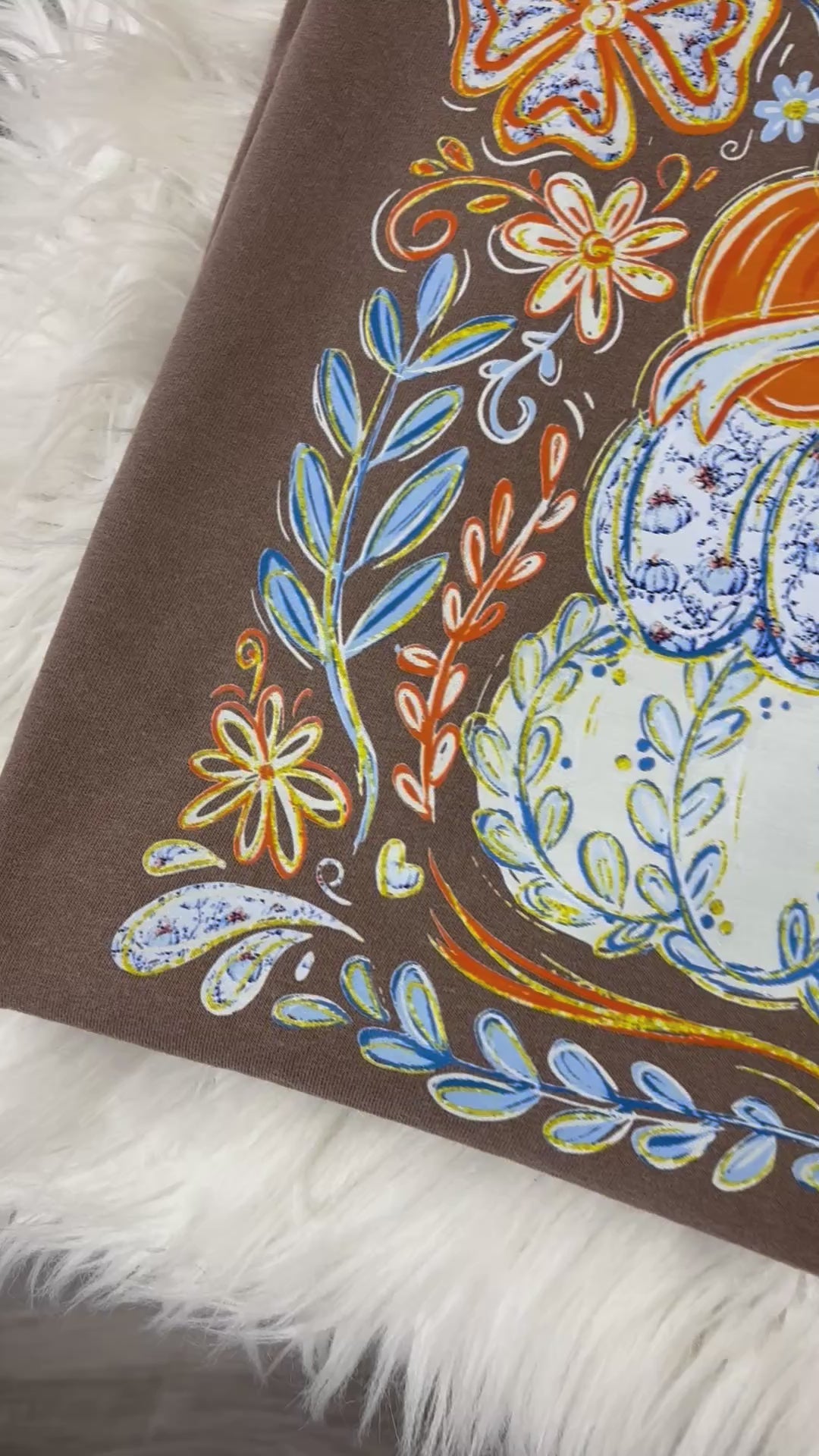 Celebrate the beauty of autumn with our Whimsical Pumpkin & Floral Fall Tee. Featuring a hand-drawn style design of stacked patterned pumpkins, playful bows, and vibrant florals in shades of orange, blue, and cream, this cozy brown tee is perfect for fall festivals, pumpkin patch days, and Thanksgiving gatherings. Soft, comfortable, and festive, itβs a must-have for your seasonal wardrobe.