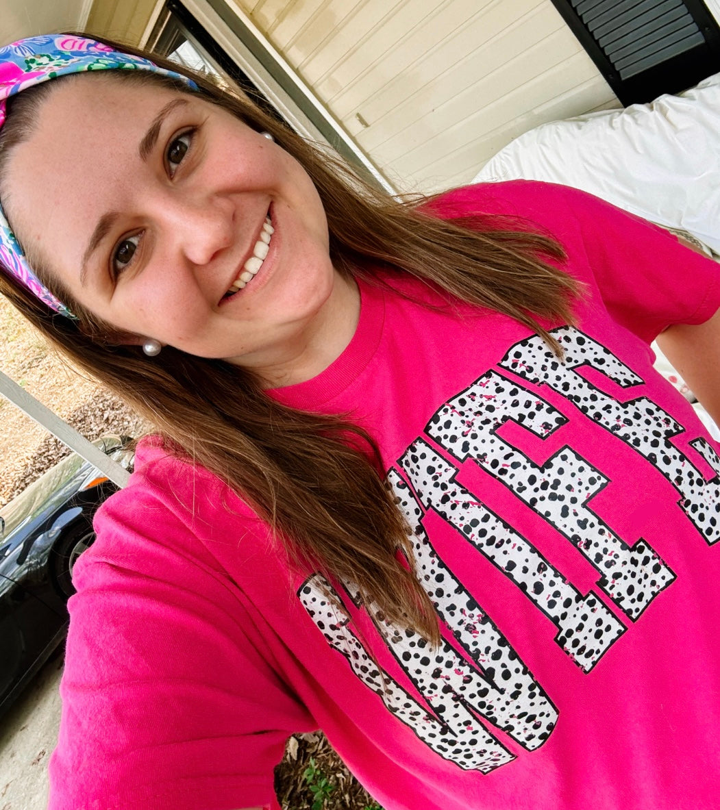 Printed on your choice of color. If no color is added to the personalization box it will be printed on the hot pink color shown.
